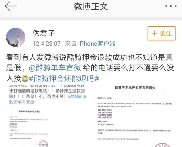 11月19日酷骑一纸公文,关闭了通州现场退押金的渠道,把退押金的地点搬到了成都...成都...成都……如果你去不了成都,他们给留了三个手机号……手机号……