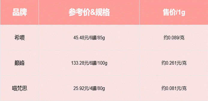 二、三款热门主食罐头PK