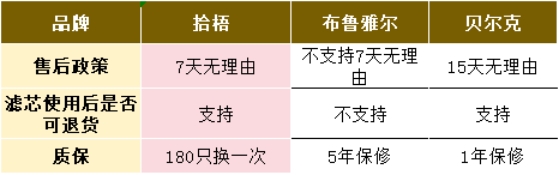 贝尔克 D9L Pro:支持15天无理由退货,滤芯使用后也能退货,条款相对宽松。但在质保年限上仅有1年,明显短于其他两款,长期使用保障不足。