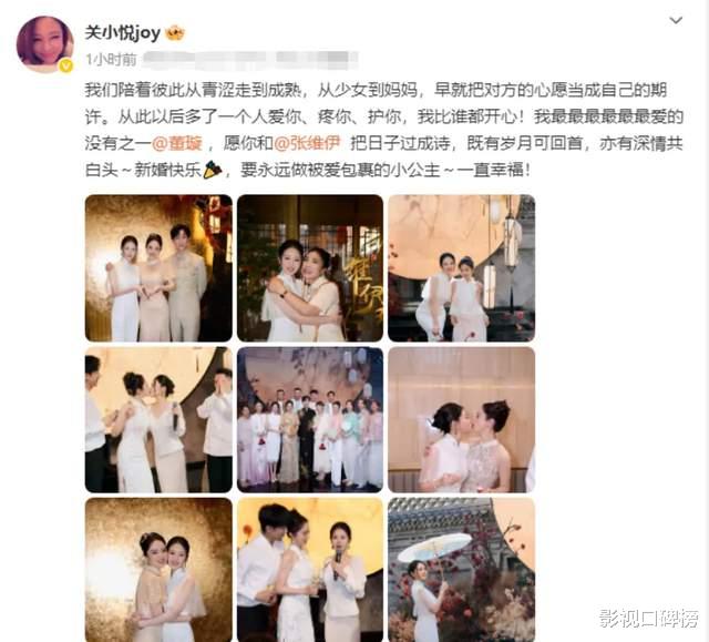 关悦为董璇送上了祝福,发文:愿你和张维伊把日子过成诗……一直幸福!两人合照时相拥在一起,关悦看到好闺蜜再婚,也是为她感到高兴的。董璇与关悦有一种江湖义气,大家有事情办都是会发文支持。