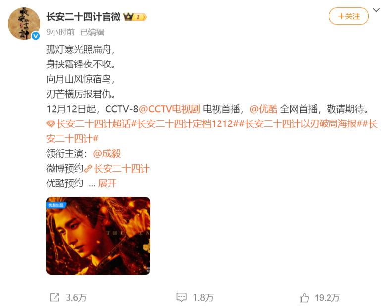 《长安二十四计》定档,网友却担心成毅,配角阵容太豪华