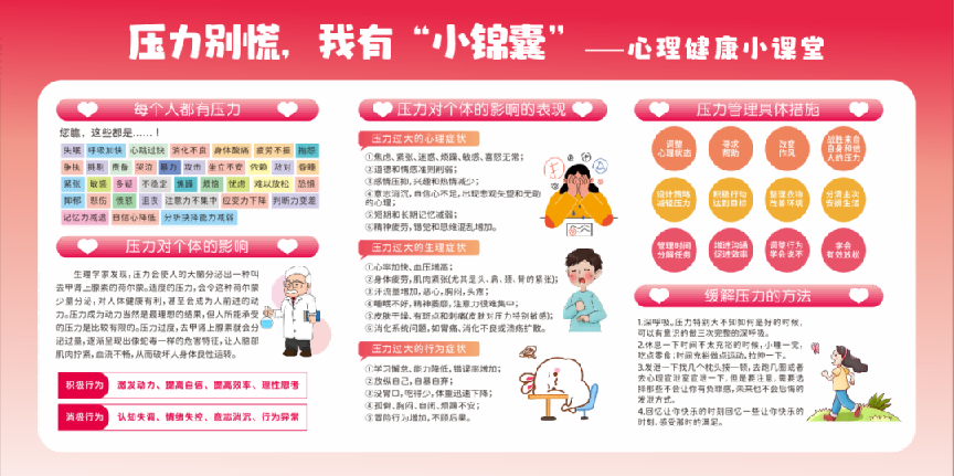 学校充分利用多种宣传载体扩大心理健康教育覆盖面:在校园主干道宣传板宣传“心灵驿站”知识;利用电子屏幕循环播放心理健康教育视频;各班通过软木板和黑板报宣传心育知识,鼓励学生学会表达、乐于互助。通过视觉浸润与互动参与相结合的方式,潜移默化地提升全校学生的积极心理健康品质。