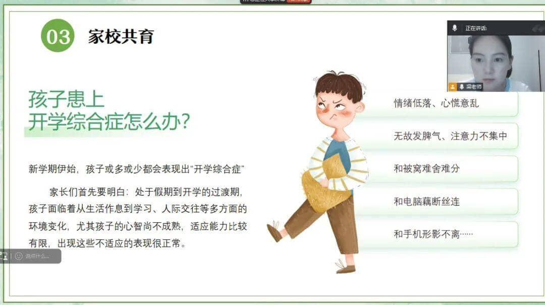 为整体提升师生及家长的心理健康素养,学校组织收看了市教科院《育儿有方》系列公益课程,帮助大家识别教育误区,学习科学陪伴方法,切实增强家校共育的针对性与有效性。