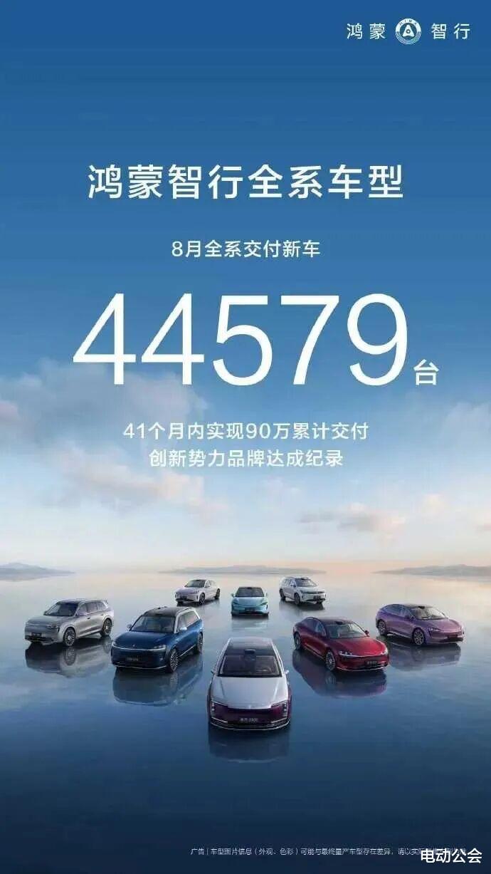 鸿蒙智行8月全系交付新车44579辆,全年累计交付突破90万辆。问界一个品牌就贡献了九成销量,达到40012辆。