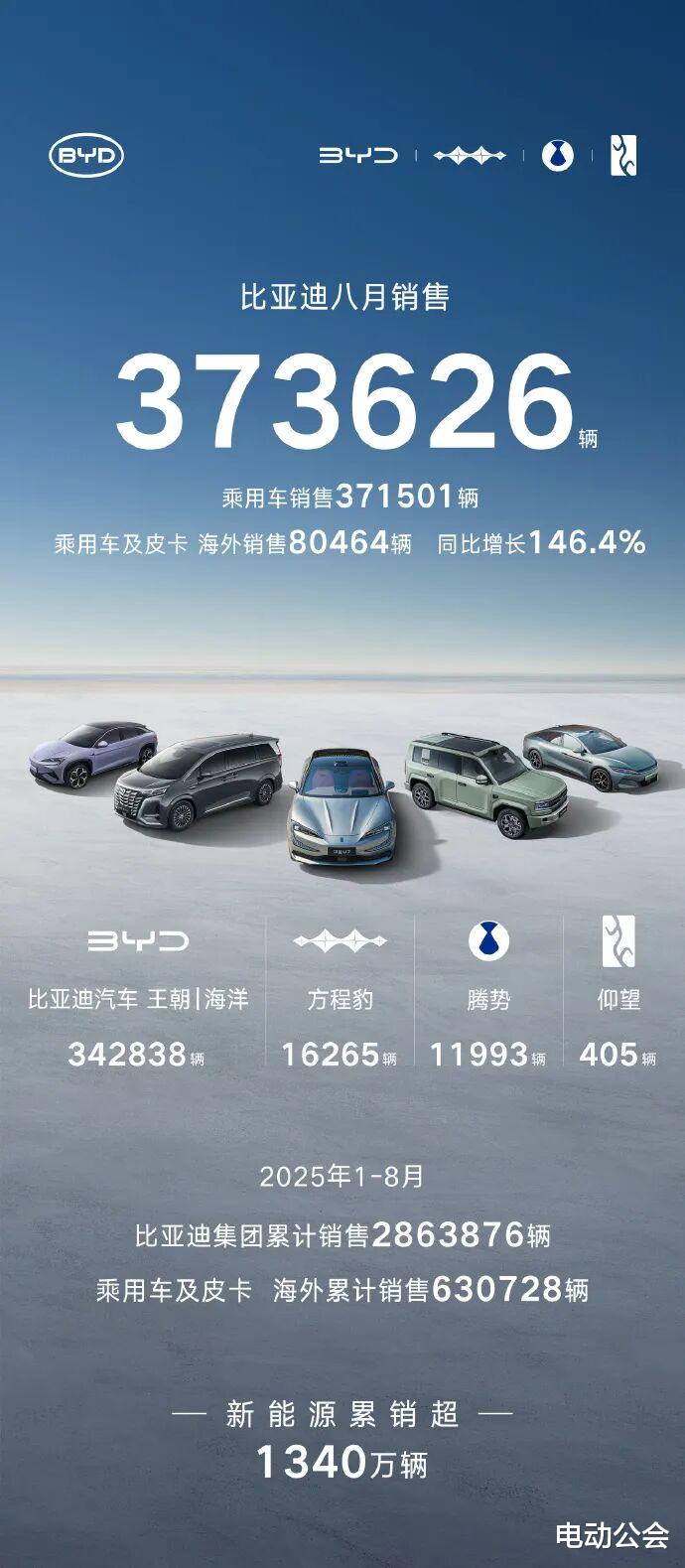 9月1日,各大车企如期公布8月销售数据,新能源市场依旧热火朝天。比亚迪以37.36万辆的绝对优势稳坐榜首,几乎追平了去年同期成绩。吉利汽车、上汽集团分别以14.74万辆和12.98万辆紧随其后,传统车企巨头依然掌控着市场基本盘。