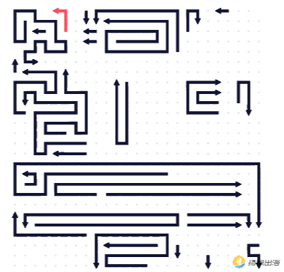 而随着地图逐渐复杂,会出现更多极长类的线条。有的拐弯分布较多,长度甚至会超越一整个屏幕,玩家在拖动后才能看到全貌,很容易产生误判。而在选错箭头,无法消除而扣血后,箭头便会由黑色转变为醒目的红色,以此提醒玩家。