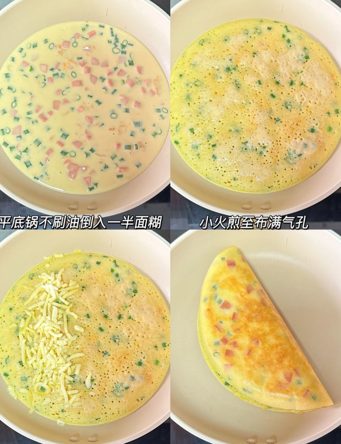 这个葱香火腿芝士松饼的做法虽然简单,但口感丰富,是家庭早餐的绝佳选择。调料的搭配非常讲究,葱的鲜香和芝士的浓郁相得益彰,火腿的咸香又为整体增色不少。只需几种常备材料,步骤也非常简单,无需复杂的操作,就能做出令人满意的美味。你只需要准备好面粉、鸡蛋、牛奶、黄油、火腿、芝士和葱,然后将所有材料调匀,倒入平底锅中烙制即可。