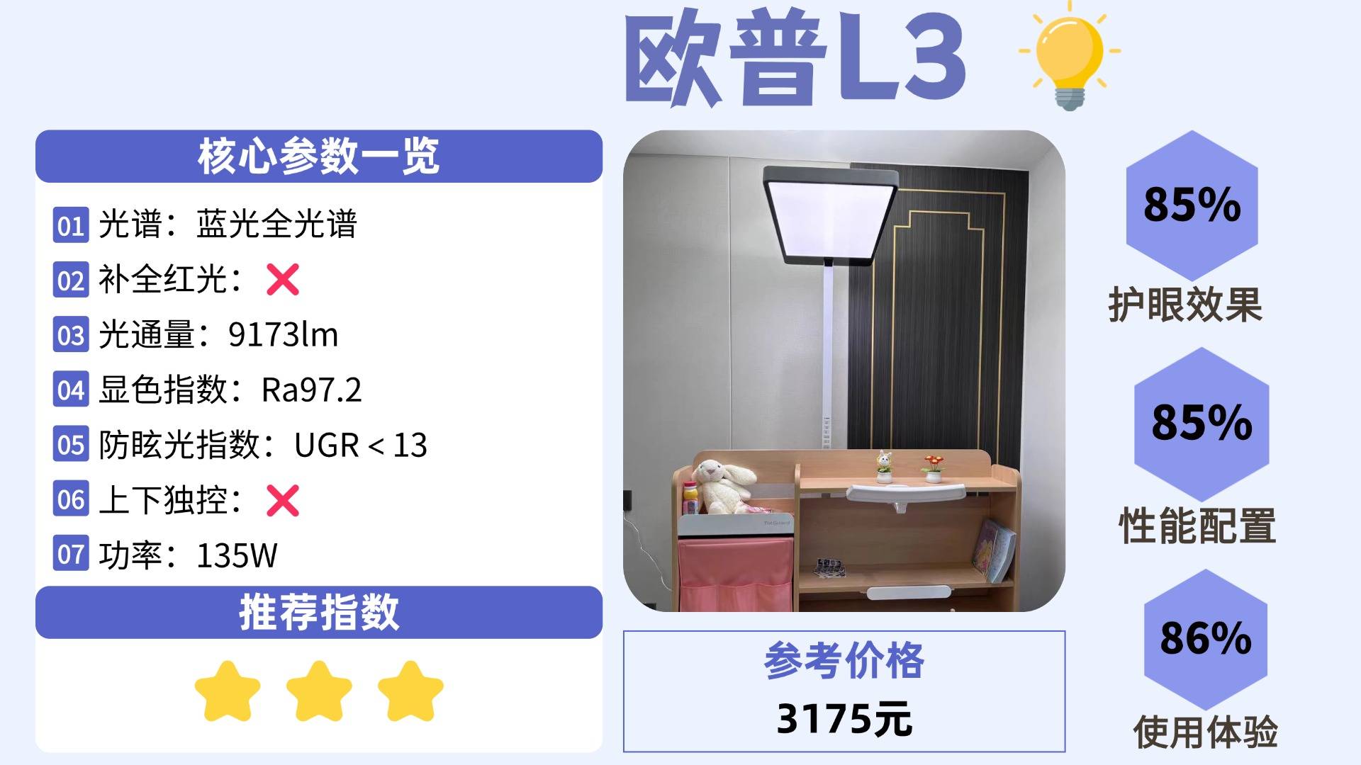 护眼大路灯第六名:欧普悦瞳L3