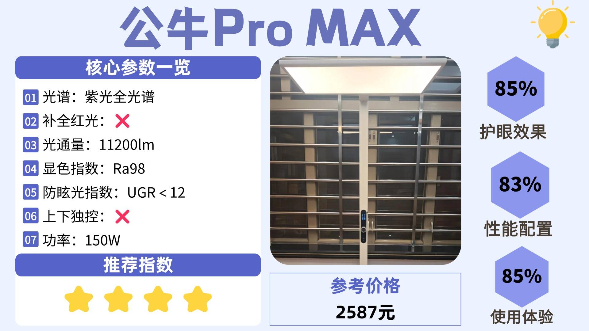 护眼大路灯第八名:公牛Pro MAX