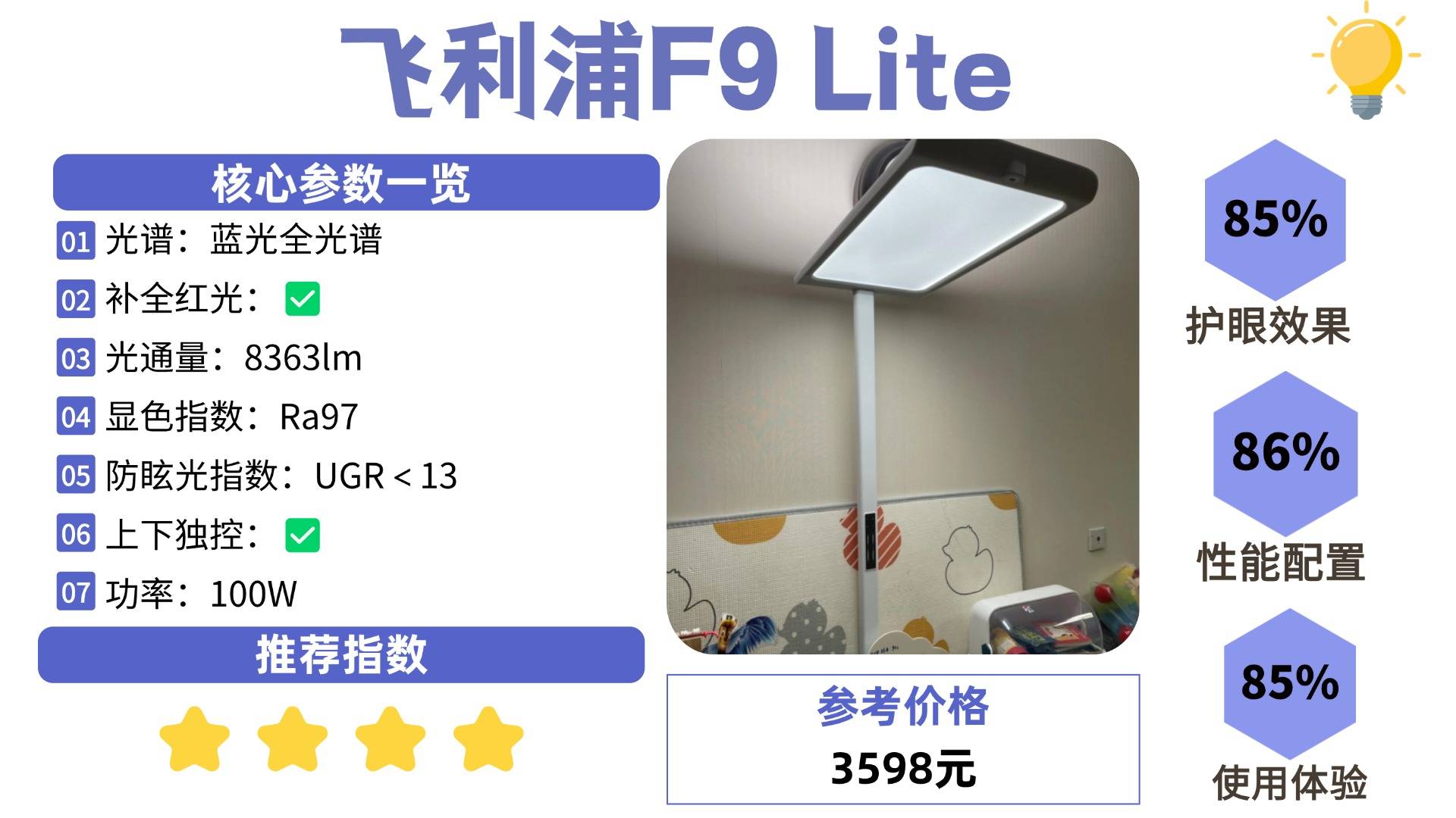护眼大路灯第九名:飞利浦F9 Lite