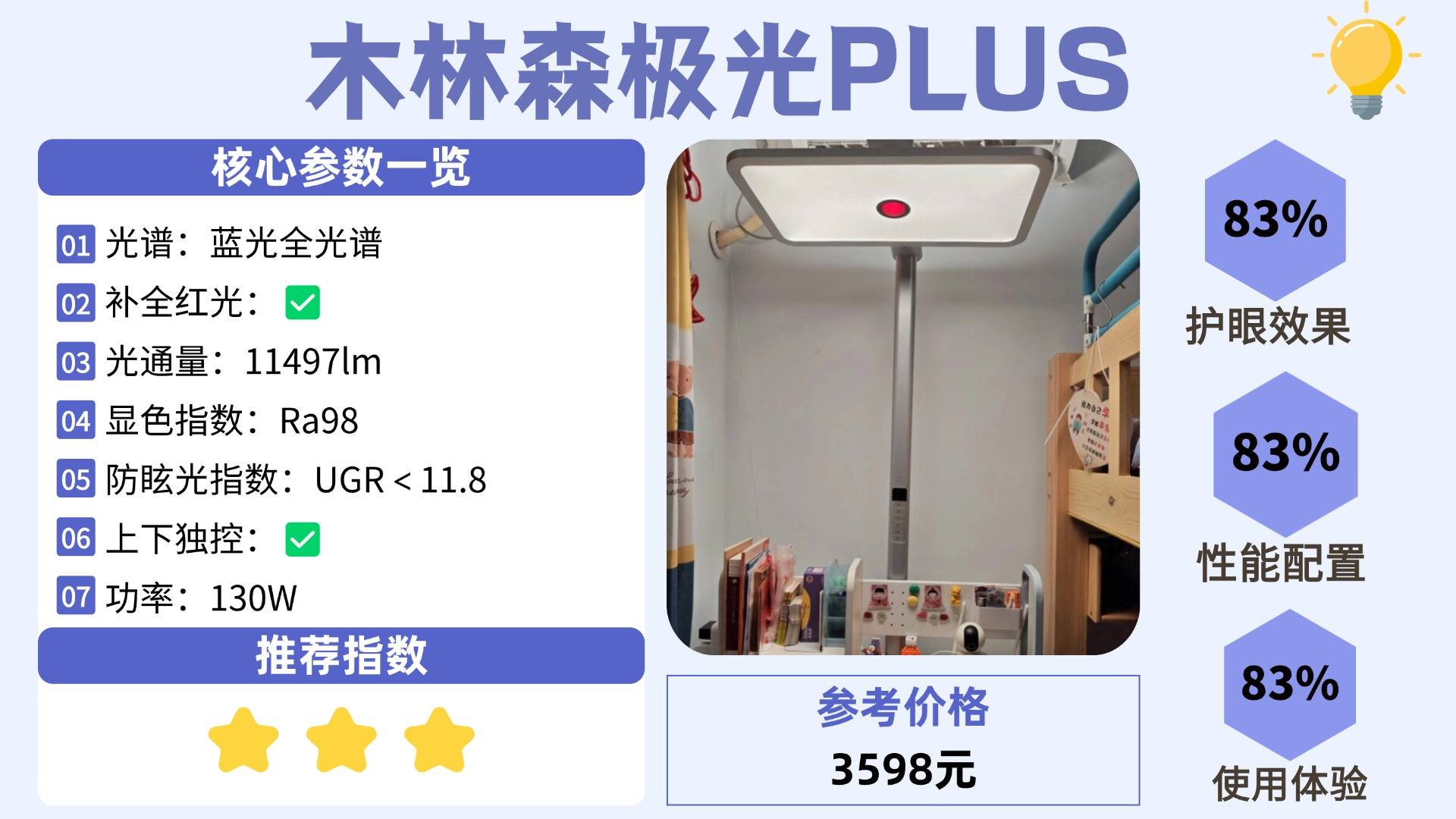 推荐理由:独创18项护眼生物光学黑科技,护眼灯行业最强“养护”标杆!