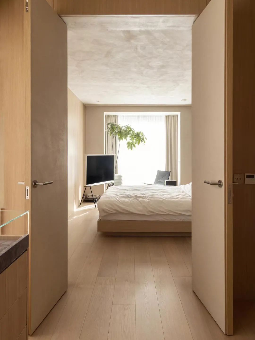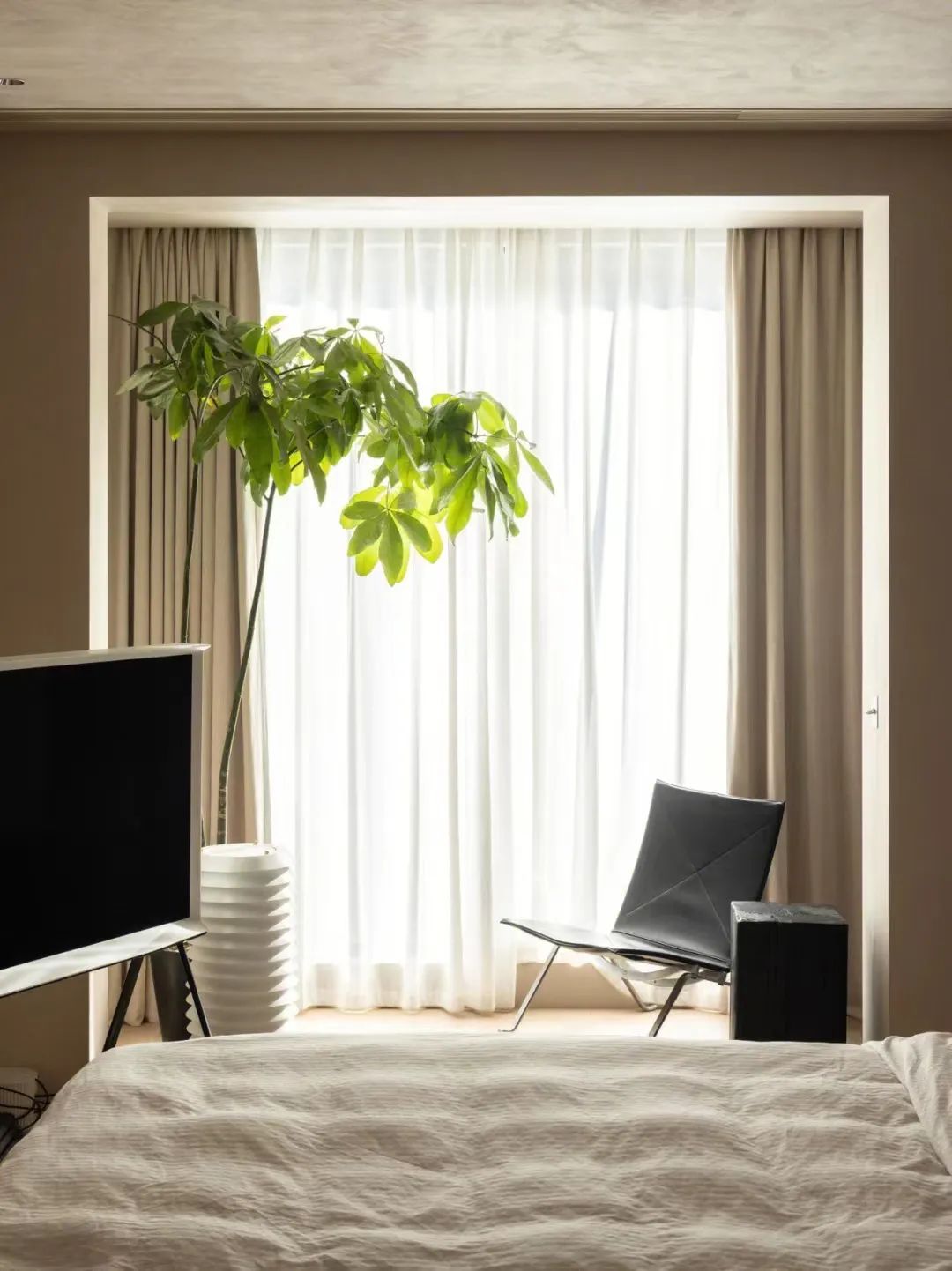 卧室,不止于一张床,它更意味着休息之上的独处、功能、氛围,卧室的舒适程度,决定了家的魅力。一个整合进多种功能的主卧套房,不仅可以提高空间利用率,还可以保证的私密性和舒适度,主卧套房的相对独立性,也是品质生活的象征。