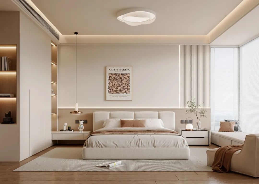 最基础的卧室套房会额外配有衣帽间、卫生间,或者休闲区和书房,从居住功能上来说比常规的卧室功能更全面。