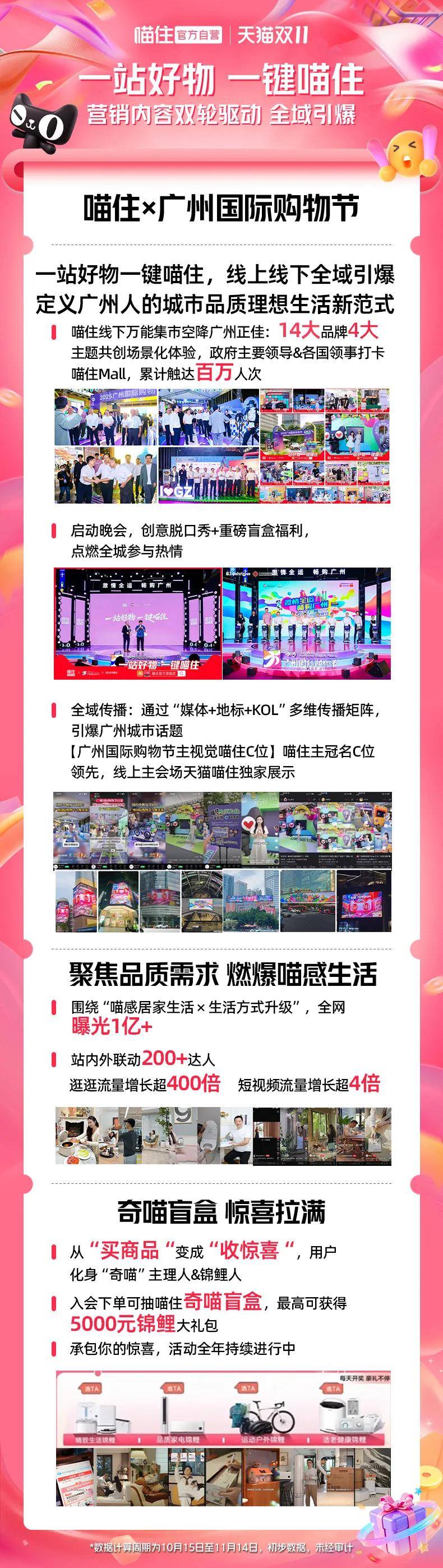 一站好物一键喵住,营销内容双轮驱动,通过“媒体+地标+KOL”多维传播矩阵,喵住实现全域引爆。同时喵住购物从“买商品“变成“收惊喜“,用户化身“奇喵”主理人锦鲤人,入会下单可抽喵住奇喵盲盒,最高可获得5000元锦鲤大礼包。