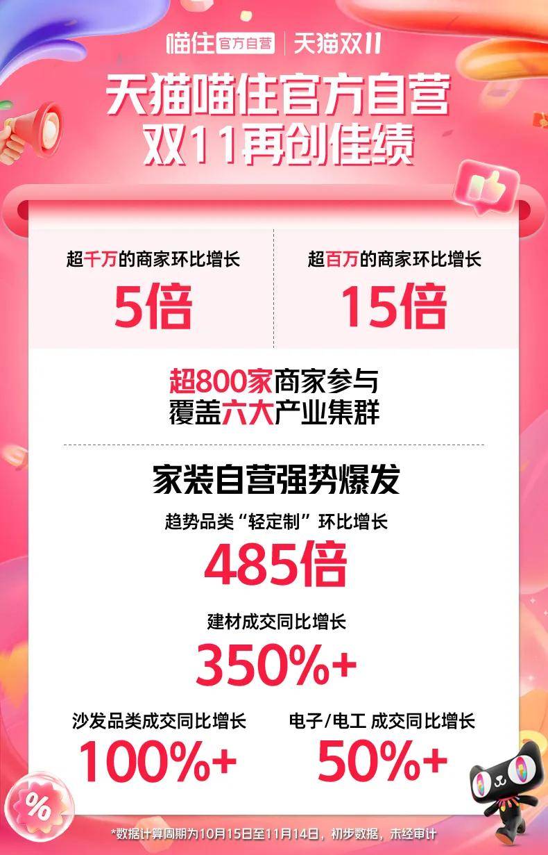 超千万商家环比增加5倍,超800家商家参与覆盖六大产业集群,涵盖家装、家电、家居、运动、适老等品类,为用户提供一站式购物体验。家装自营强势爆发,建材同比增长350%+,趋势品类“轻定制”环比增长485倍,沙发品类同比增长100%+。