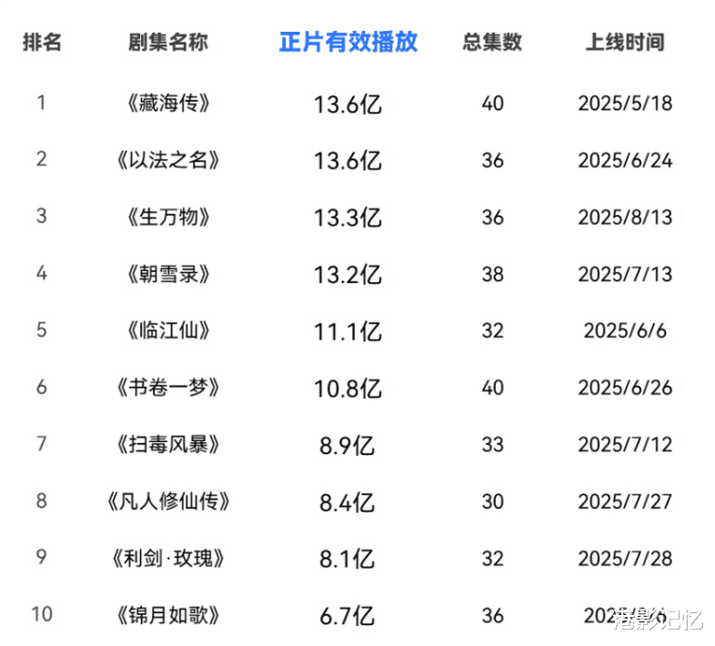 这部剧集依然在暑期档收获了8.4亿的有效播放量,算得上是稳坐前十的常规选手。