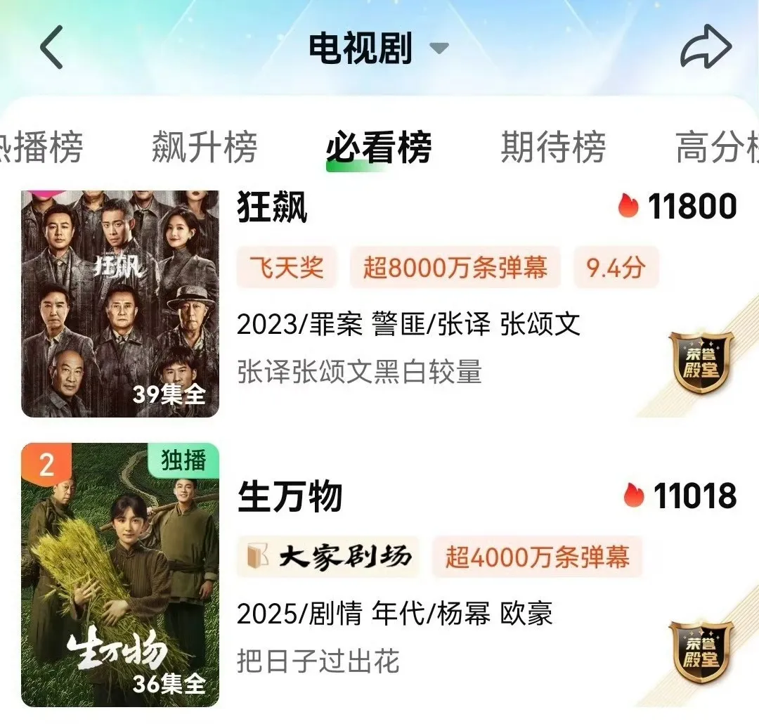 与此同时,今年也涌现出了一批各个维度长尾数据亮眼的剧集——《扫毒风暴》收官之后豆瓣打分人数已经翻了一倍,《生万物》完结半个月后依然稳居云合收视率霸屏榜第一位,《藏海传》暑期档播放量中超过60%是回看和二刷……在微博热搜榜上,我们也经常能看到诸如#雁回时2025长尾效应#、#莲花楼长尾效应好强#等词条,这背后是希望将此用户心智,植入观众脑海的视频平台。