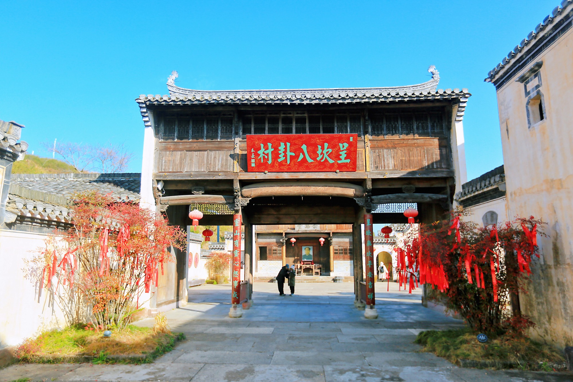 呈坎村被朱熹赞为“呈坎双贤里,江南第一村”,最早起源于唐代,村落完全按易经中的八卦理论选址布局,“枕山、环水、面屏”,是我国至今保存最古老的八卦村。