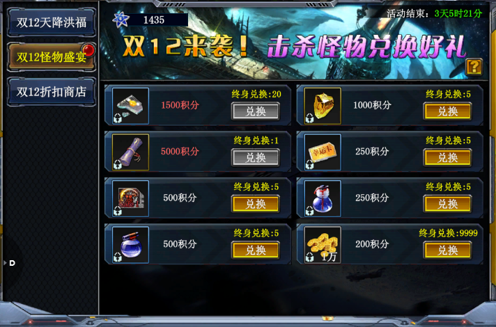 3、活动共开启4天,第4日为兑换日,当日击杀怪物不会再获得积分兑护