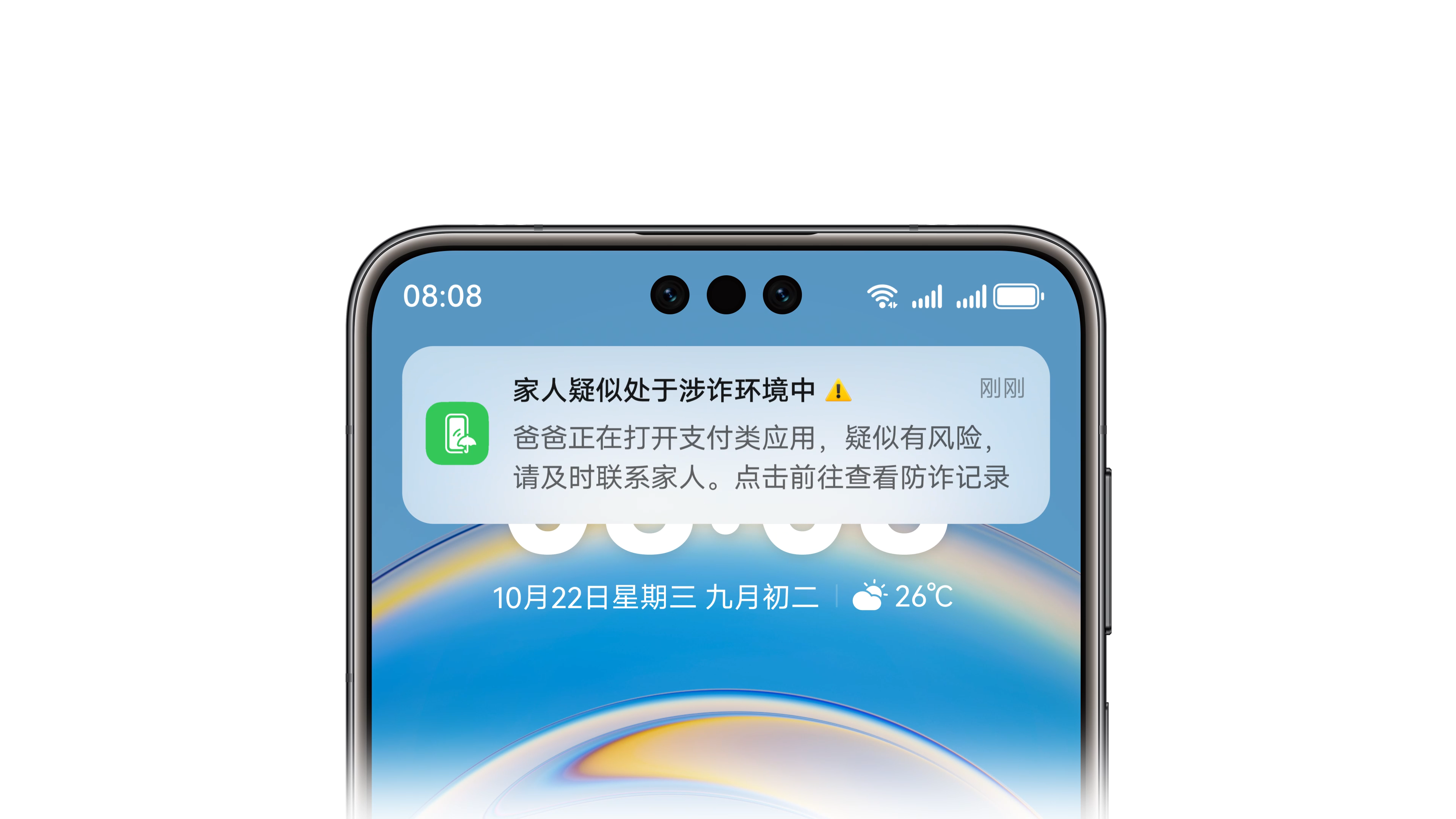 现在的电诈套路深,堪比剧本杀,父母真的防不胜防。好在鸿蒙6有亲情防诈功能,让我可以添加爸妈为远程守护对象。前两天,我手机就突然收到提醒,显示我爸正在接听高风险来电。我当时心里一紧,立刻在自己手机上帮他远程挂断,反手打视频过去跟他讲清原委。不只是被动拦截,还能让家人之间形成联动,安全感拉满。
