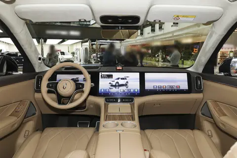 内饰与舒适性:不同的豪华诠释进入深蓝S09的车内,浅色内饰配色营造出温馨的家居氛围。双15.6英寸大连屏成为视觉焦点,搭载的HarmonyOS系统支持丰富的智能功能。值得一提的是,该车采用43英寸HUD抬头显示替代传统仪表盘,使驾驶信息获取更加便捷。车内用料讲究,大面积软质材料包覆提升了触感体验。