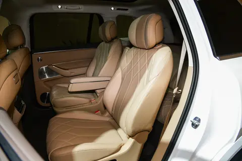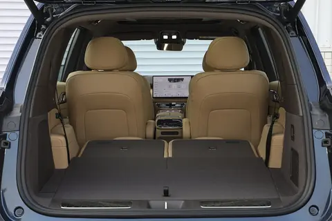 空间表现:灵活实用的布局得益于3105mm的轴距,两款车在空间表现上都可圈可点。以身高175cm的体验者为例,在深蓝S09的第二排可以获得充裕的腿部空间。第三排座椅的实用性也值得肯定,即使成年人乘坐也能保证基本的舒适性。后备箱常规容积427L,后排座椅放倒后可扩展至1392L,满足多种装载需求。