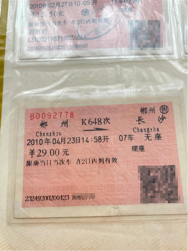 我已经习惯了这种情景,但有时也不免心里有些烦躁。但那一次,旁边站着的一个男孩引起了我的注意,他冷眼旁观着这一切,丝毫看不出有一点的烦躁或难受,那种平静与周遭的环境似乎处在两个平行空间。我不禁与他交谈了起来,在这逼仄的空间里似乎也没有那么难受了,因此也开启了人生的一段缘分。如今我们已经步入婚姻11年了,回头望去,还是会禁不住感叹。那张火车票我至今都保留着,2010年4月23日,从郴州到长沙。