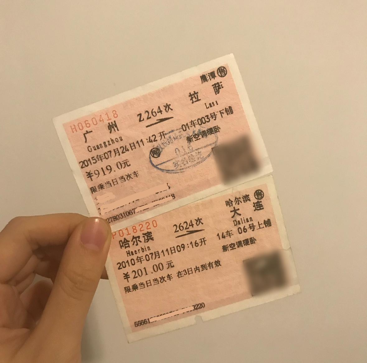 原想分享的是2016年独自乘火车从广州去拉萨那一次车程长达56个小时。但当真的翻出票根,却发现记忆浓度更高的,是和年幼时的好友第一次结伴从哈尔滨去大连。时间已是15年前,彼时的火车缓缓穿越辽阔的东北平原,从烈日当空到暮色四合,两个未成年少女大剌剌地四处游荡,不以为意地完成了一段有惊无险的旅程。那几乎就是我们近20年的牢不可破的友谊的缩影。