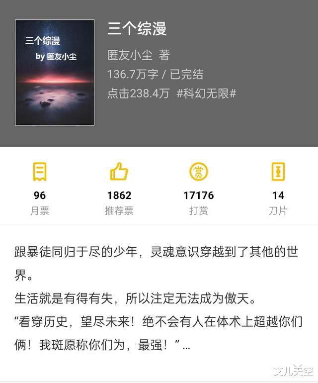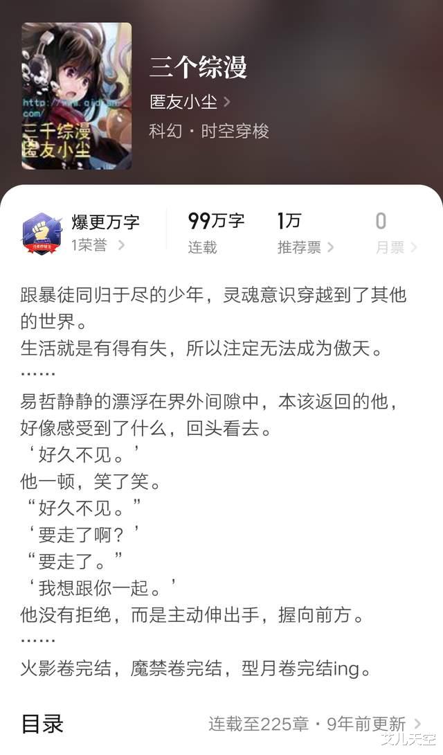 另外如果不是作者今天回起点开新书了,还真没注意到作者十年前就在起点上传过自己的作品《三个综漫》,只是没有签约,免费更新的。