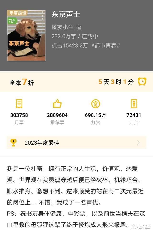 晚上倒是发现刺猬猫的三届年度最佳作者《东京声士》的匿友小尘新书发在起点了。