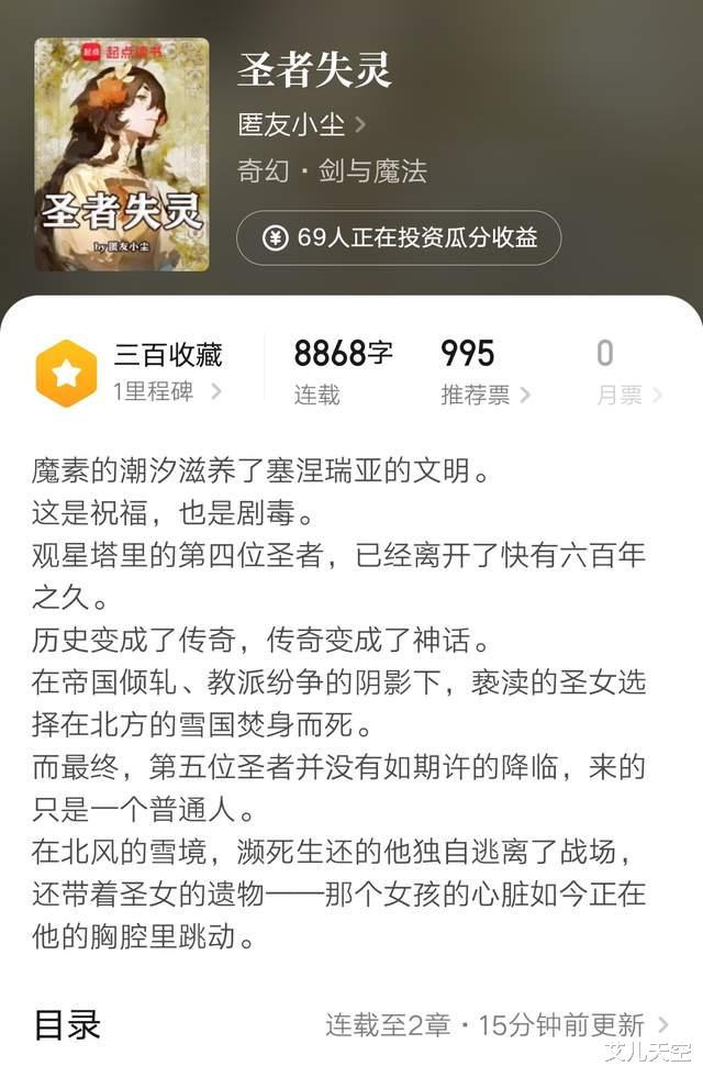 话说刺猬猫的这些作者似乎都挺喜欢写奇幻的,来起点这边大多也是选择奇幻入手。之前可怜的夕夕、紫夜弦歌、四千局后、有妖眼等人都是如此。