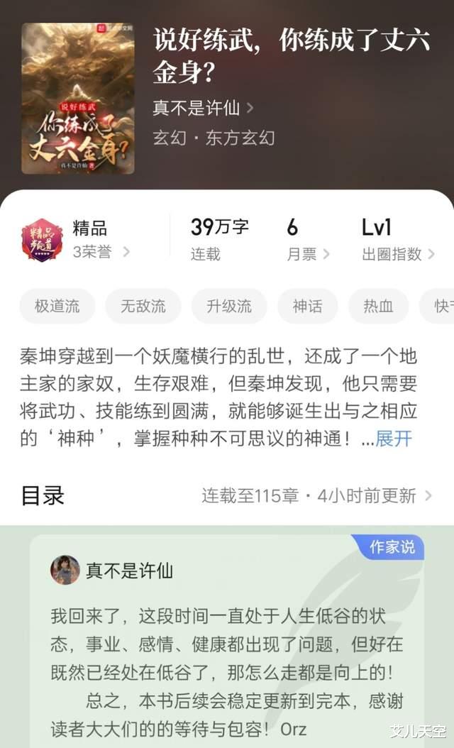 1、真不是许仙老书丈六金身复更真不是许仙今天捡起了自己断更一年半的“新书”《说好练武,你练成了丈六金身?》,准备写到完本了。