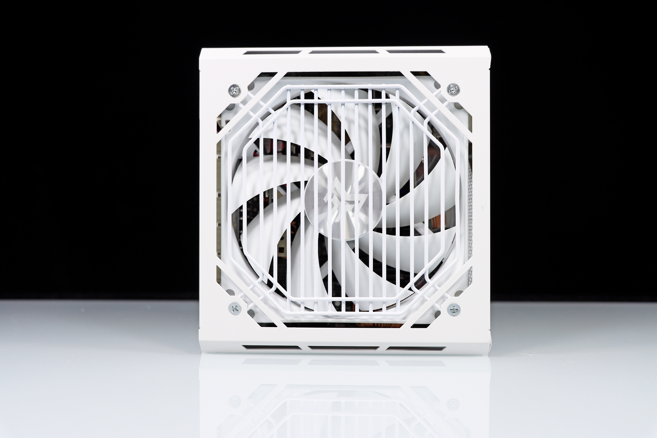 ▲ 电源的造型经过了特别的设计。电源标配了 120mm 液压轴承风扇,风扇支持智能温控曲线。