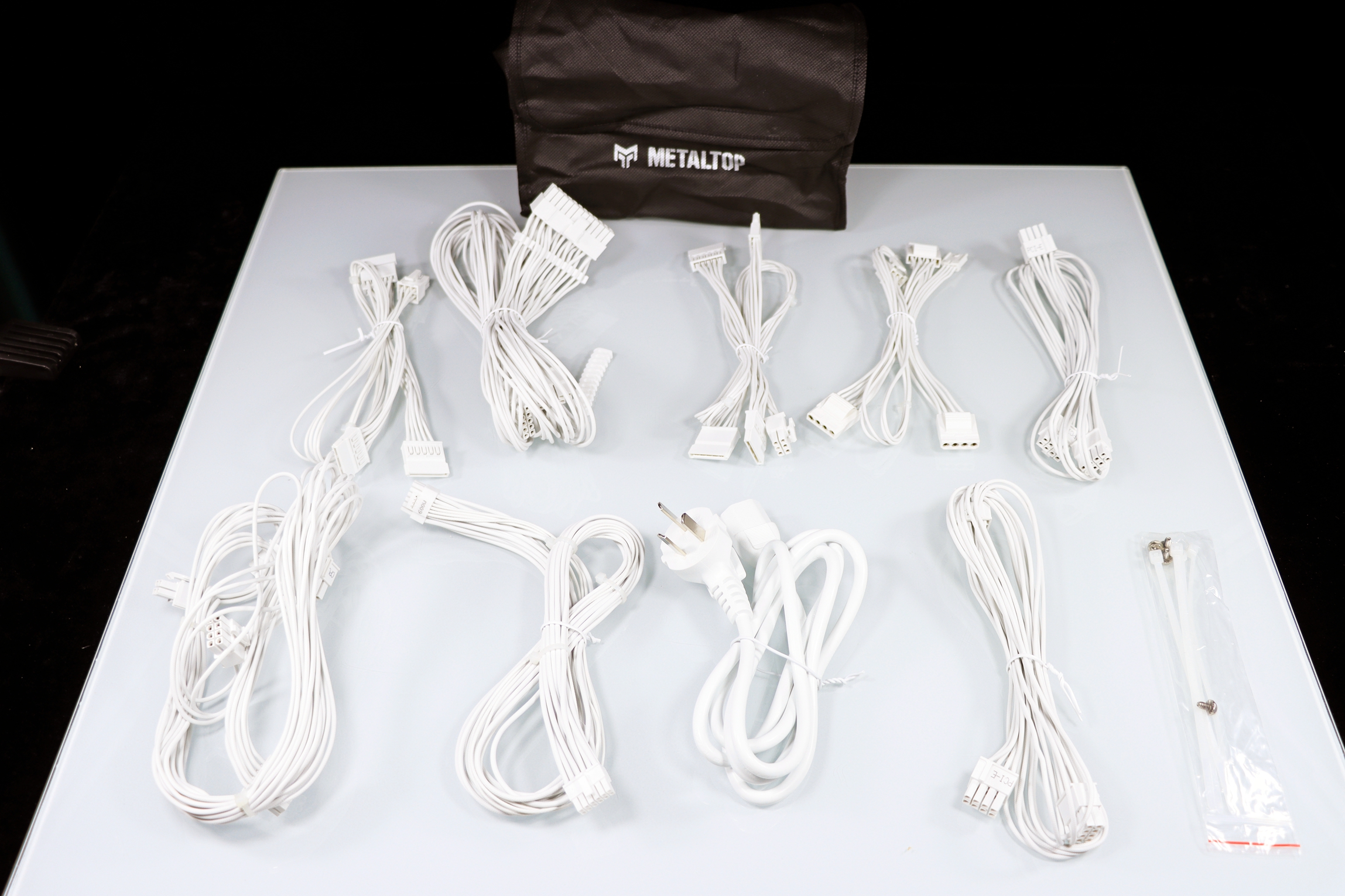 ▲ 电源的标配的模组线采用高品质压纹线材,这让线材美观整洁,有着出色的高端质感。线材包采用帆布材质,可存储暂时用不到的线材。