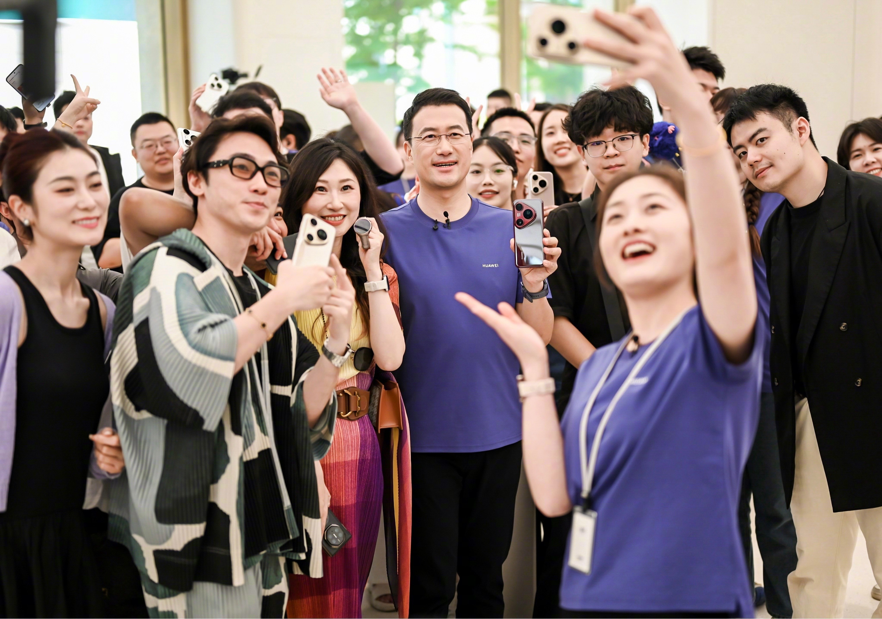 在此次首销活动中,华为终端BG首席执行官何刚以 “一日店长” 的身份亲临现场,为消费者带来一系列惊喜与温暖互动。当天,他一早就来到门店与线上线下的朋友们热情互动,分享首销的喜悦。随着开门营业的倒计时结束,何刚站在店门口迎接第一批进店的消费者,与他们击掌庆祝,一句句 “欢迎光临” 让消费者们感受到了华为的热情与尊重。而在为首批购机用户交付新机时,何刚还亲自为用户包装礼盒,细致入微的服务让收到新机的用户满心欢喜。与此同时,他还贴心地与用户分享用机技巧,讲解产品的独特功能与创新之处,让消费者们对华为Pura 80系列有了更深入的了解。