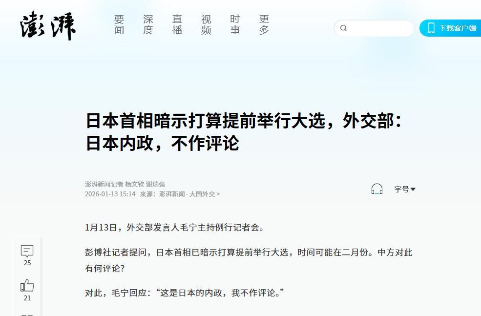 面对这场席卷政坛的风暴,中方的回应简洁而坚定:“这是日本的内政,我不作评论。”短短一句话,既划清了不干涉他国内政的界限。