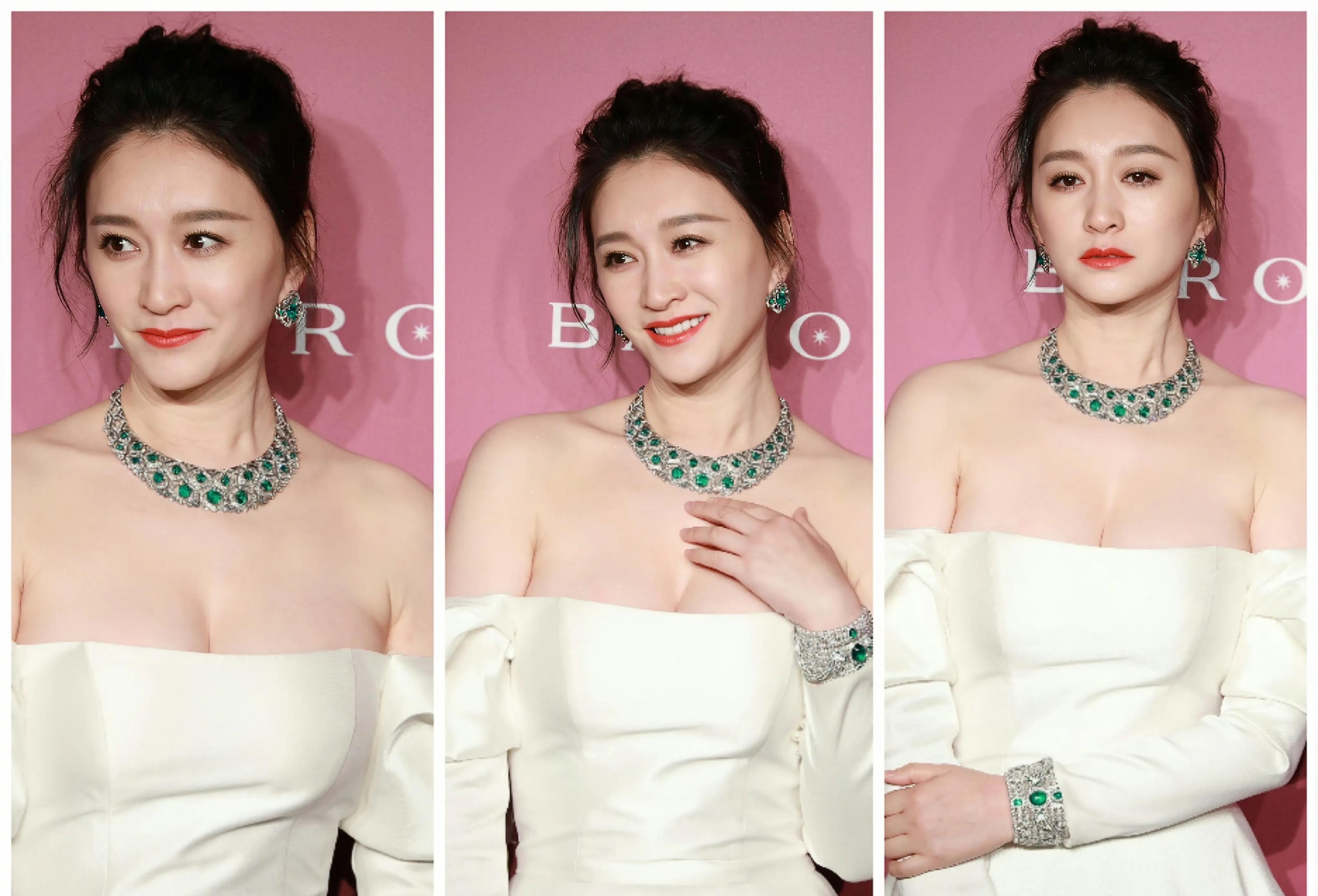 杨蓉与李小冉一样,都是选择了白色晚礼服。