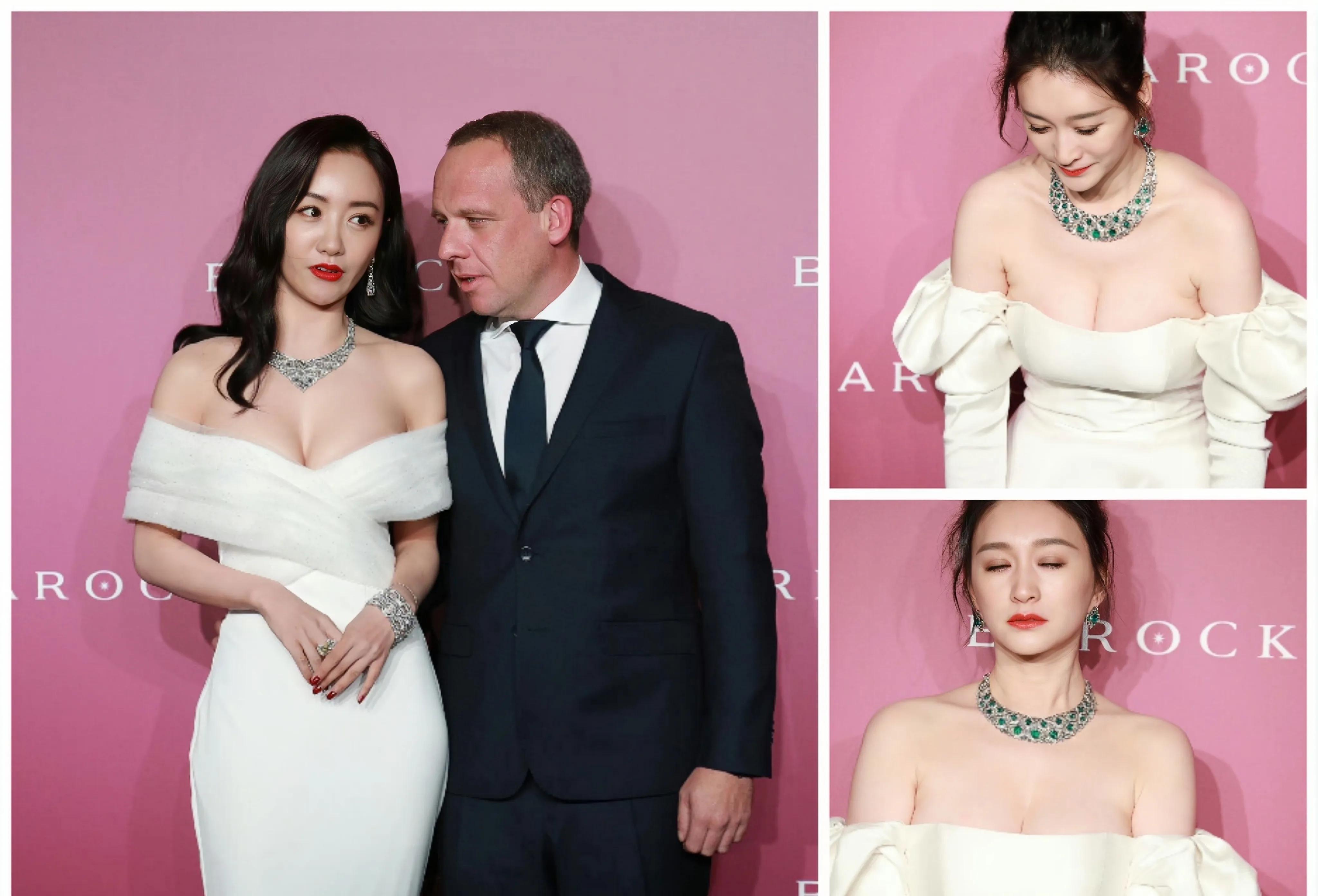 当日她身着白色抹胸长裙,亮眼的肌肤得以尽情展露。