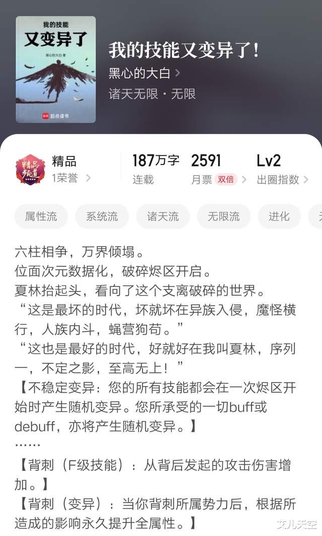 1、《我的技能又变异了!》完结黑心的大白作品,偏脑洞向的乐子文。