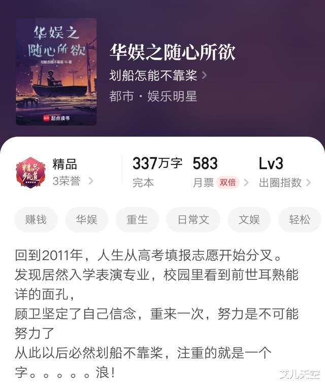 2、《华娱之随心所欲》完结“划船怎能不靠桨”作品,多女主文娱。