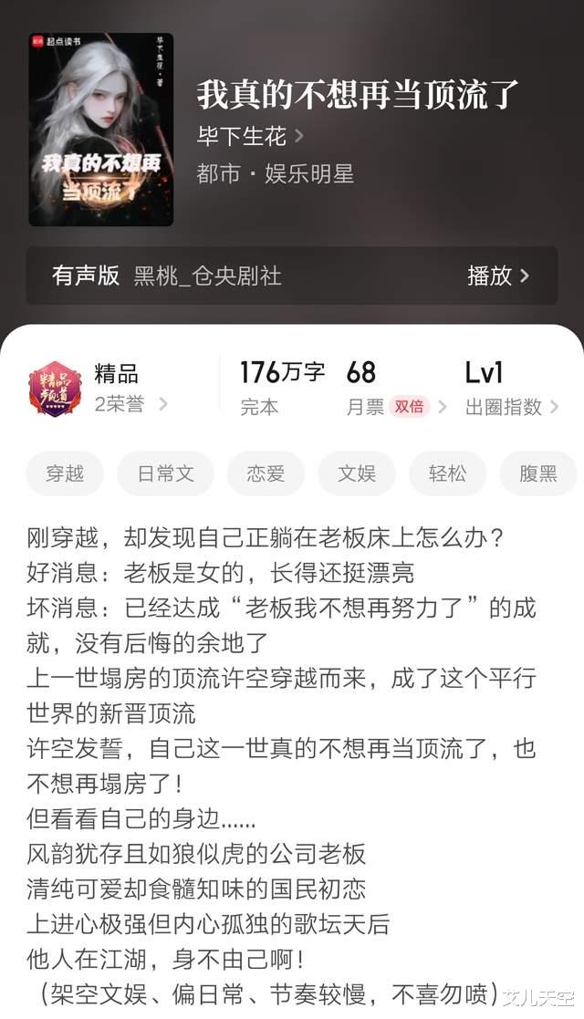 3、《我真的不想再当顶流了》完结“毕下生花”作品,也是多女主文娱。