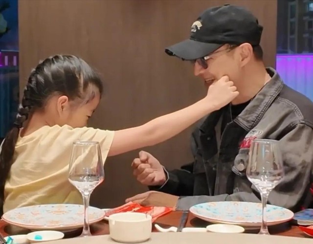 饭桌上的汪峰也尽显老父亲的宠爱。