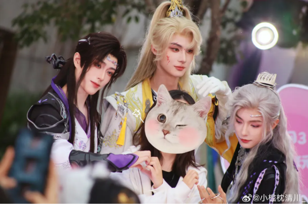 图:和玩家们合影留念的COSer,图源微博@小槛枕清川_