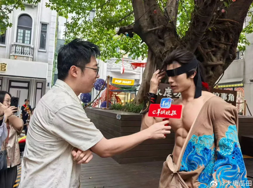 图:微博网友“大唐瓜田”拍下了《羊城晚报》对丐帮COSer的采访场景