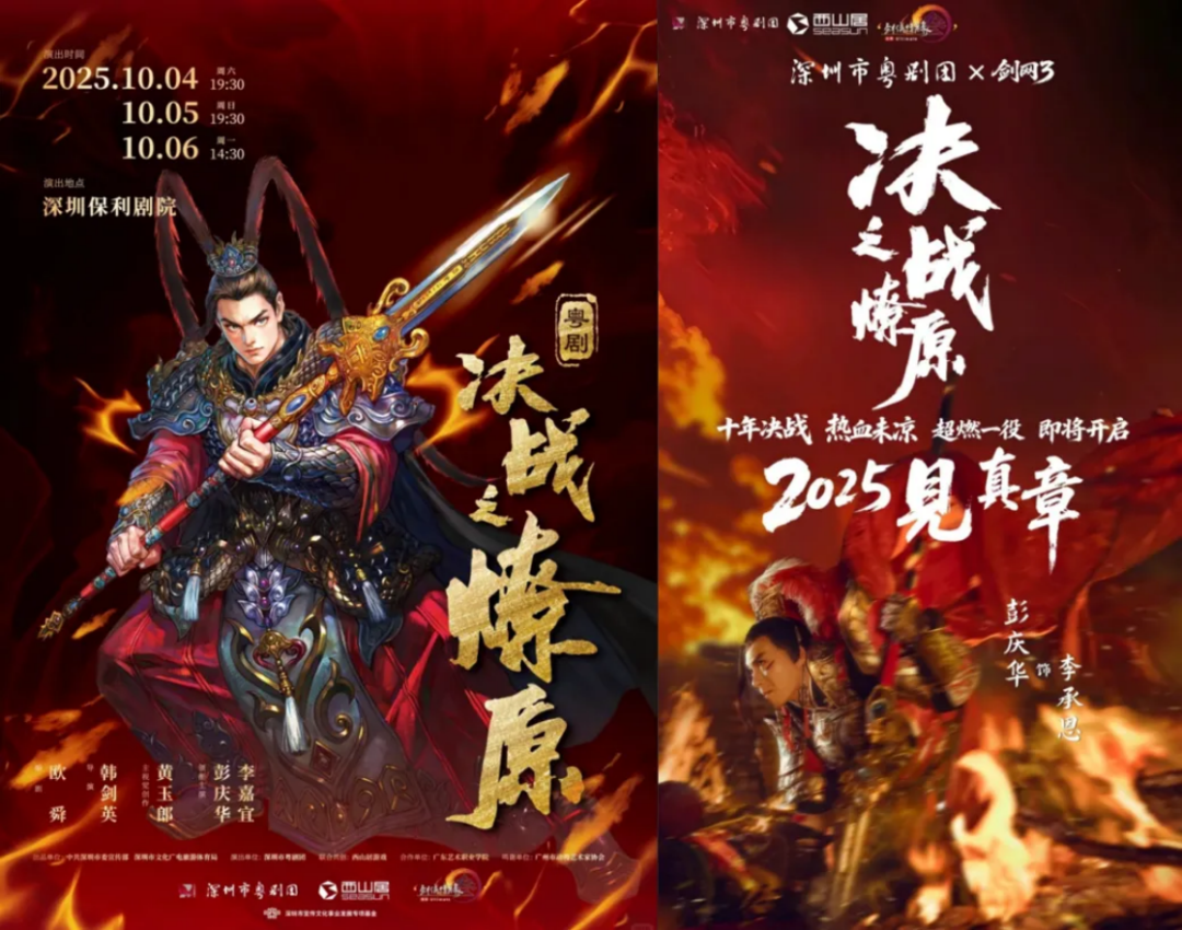 在“剑网3×粤剧”的著名作品《决战天策府》火爆多年后,《剑网3》又与深圳粤剧团创作了另一部大型创新粤剧《决战之燎原》,继续将游戏剧情与传统戏曲美学结合,运用现代舞台技术打造高燃配乐和武打场景,在国庆假期期间正式上演,连开三场,叫座又叫好。观众中年轻群体占比过半,有不少甚至是从全国各地乃至港澳地区前往深圳观看的,对于粤剧来说,它是新生代的创新作品,对于《剑网3》来说,它更是利用游戏这个载体传承传统文化艺术的典范。