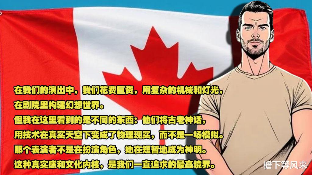 一位来自加拿大的艺术家评论道:“在我们的演出中,我们花费巨资,用复杂的机械和灯光,在剧院里构建幻想世界。