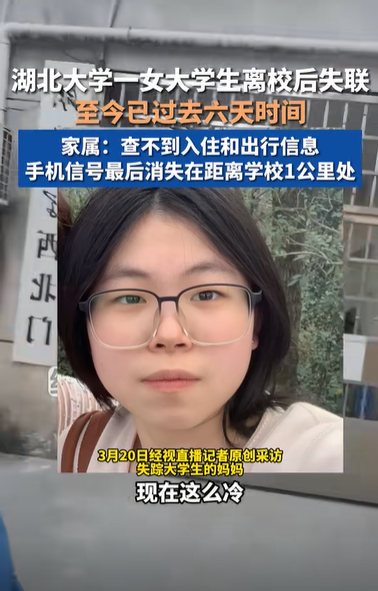 湖北大学阳逻校区一名大一女生失踪,就让人再次感慨人生的坎坷。3月20日,一位网友自称她的女儿张钰臻自3月15日下午离开学校后至今未归,家人心急如焚,恳请社会各界帮助寻找。她一方面表示自己心都碎了,而另一方面表示为什么学校在孩子失踪后3天才通知了家长。