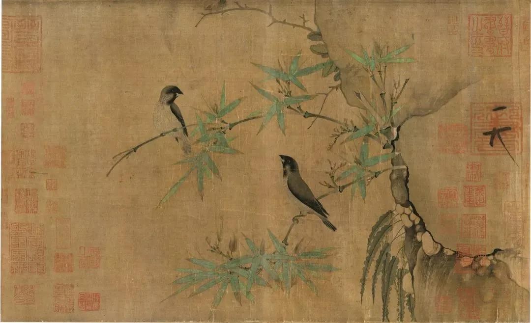 在绘画方面,宋徽宗同样天赋异禀,他尤其擅长花鸟画,其笔下的花鸟,栩栩如生,呼之欲出,将宋代工笔花鸟画的发展推至高潮。他的作品《瑞鹤图》中,群鹤翔集于宫殿之上,姿态各异,生动逼真,天空与宫殿的描绘细腻入微,色彩典雅,整幅画充满了祥瑞的气息和艺术感染力;《芙蓉锦鸡图》里,锦鸡栖于芙蓉花枝上,回首顾盼,羽毛的质感、芙蓉花的娇艳都被刻画得淋漓尽致,体现了他对自然细致的观察和精湛的绘画技巧 。他还创立了 “宣和画院”,广纳天下绘画人才,培养和发掘了许多优秀画家,极大地推动了宋代绘画艺术的繁荣发展。