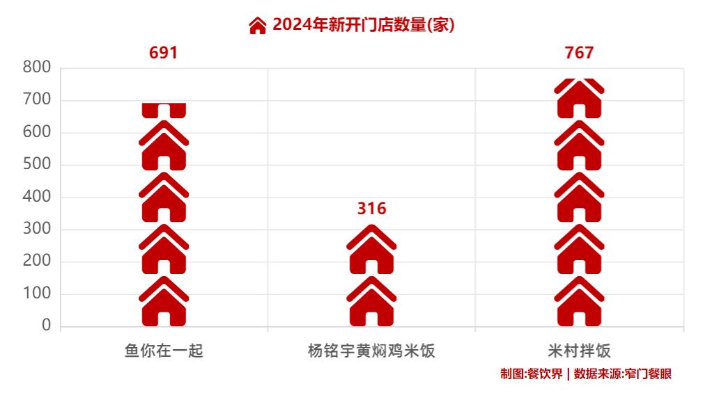 头部品牌仍在疯狂扩张。鱼你在一起、杨铭宇黄焖鸡米饭、米村拌饭2024年分别新开691家、316家和767家门店。这场游戏中,有人成为黑马,更多人则成为炮灰。