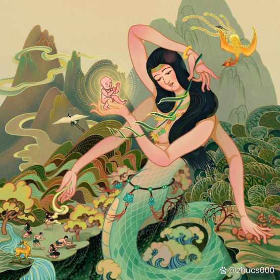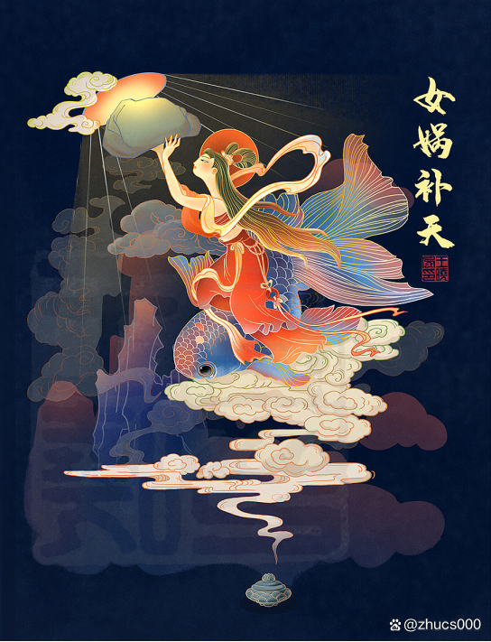 他说:“女娲娘娘,快教救我吧!”他把偷尝仙酒的事告诉了女娲。女娲急忙找到霹大仙,为他求情。霹大仙气得哇哇大叫,火一上来,一扬手把天杵个窟窿。女一看又惹下祸了,这要是叫玉帝知道了,仙童和霹雳大仙都得治罪。为了不惹事,女不声不响地烧泥补天。补好天后,还剩下一小块泥。她想到这天宫清规戒律太多,心中不乐,就用剩下的一块泥捏成了一男一女两个小泥人,吹口仙气,两个小泥人就飘飘悠悠地下凡了。到了凡间,拜了天地,男耕女织,生儿育女。女娲看到他们生活很好,非常高兴。